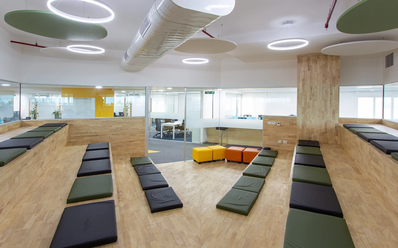 The design seeks to establish an external public image of the organisation as a world-class global company. It revolves around the key propositions related to scale, privacy, and sustainability in order to achieve a sense of office spaces. The transition from the inside to outside is designed in specific zones that allow scheduled and impromptu gatherings, thereby creating vibrant, interactive, and constantly changing office spaces.